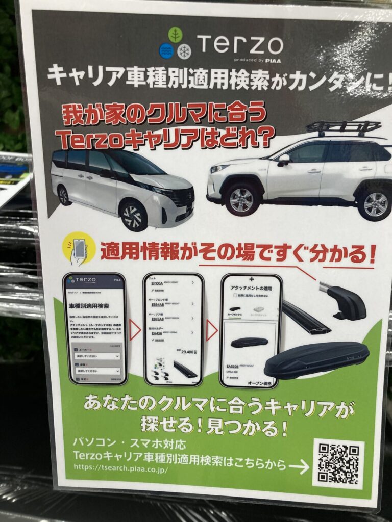 検討した結果、取り付けるなら、TerzoのSOLIO適合ベースキャリア(写真)+同じくTerzoグランフォーマシリーズの300L容量(長さ200cm)のルーフボックス・・・ということになりそうです。