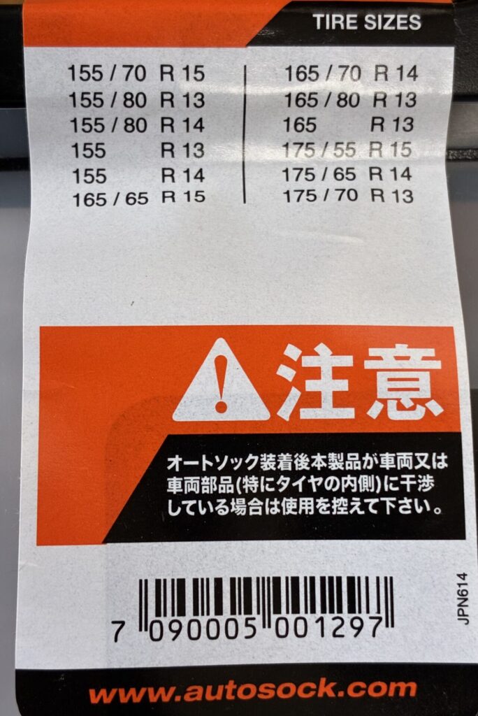 そしてチェーンの種類では「布製チェーン」、買う製品については店頭で勧められた「AutoSock Y17」と、選択肢が絞り込まれ、購入・携行を決定しました。
