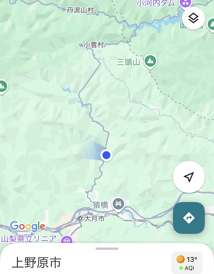 国道411号線 (大菩薩ライン) で山梨方面に向かいます。
