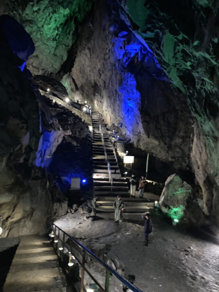 流石に洞内は整備されていて、コンクリート舗装された道や手すりの設置された階段など、歩行路隈なく行き届いています。過度なライトアップなどもなく、適度な照明に終始して、どちらかというと地味目の観光地でした。