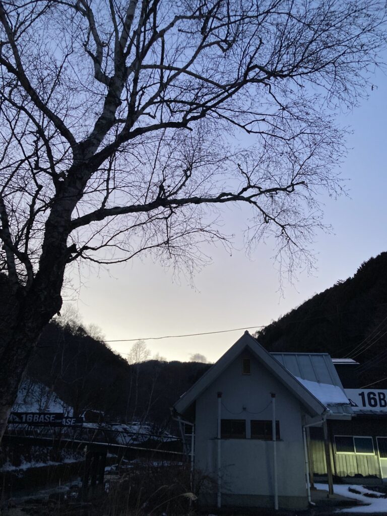澄んだ青空に、沈んだばかりの西陽で少しだけ色彩を持ったシルエットの富士山はとても綺麗でした。