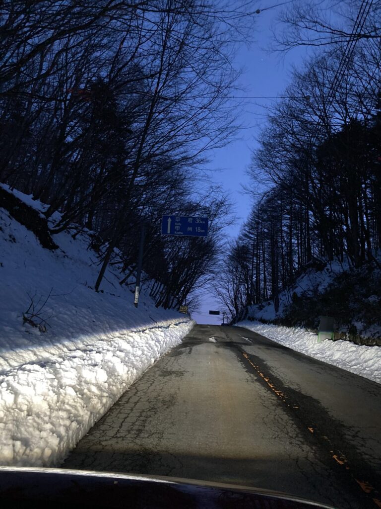 道路上に氷雪はありませんでしたが、路肩には残雪がたくさん残っていました。