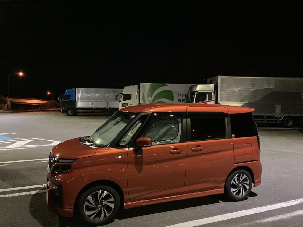 もうこの時間帯は陽もどっぷりと暮れ、駅前の市街区を少し離れると、あたりは真っ暗です。急いでコンビニとガソリンスタンドに寄り、今日の車中泊場所を探します。
