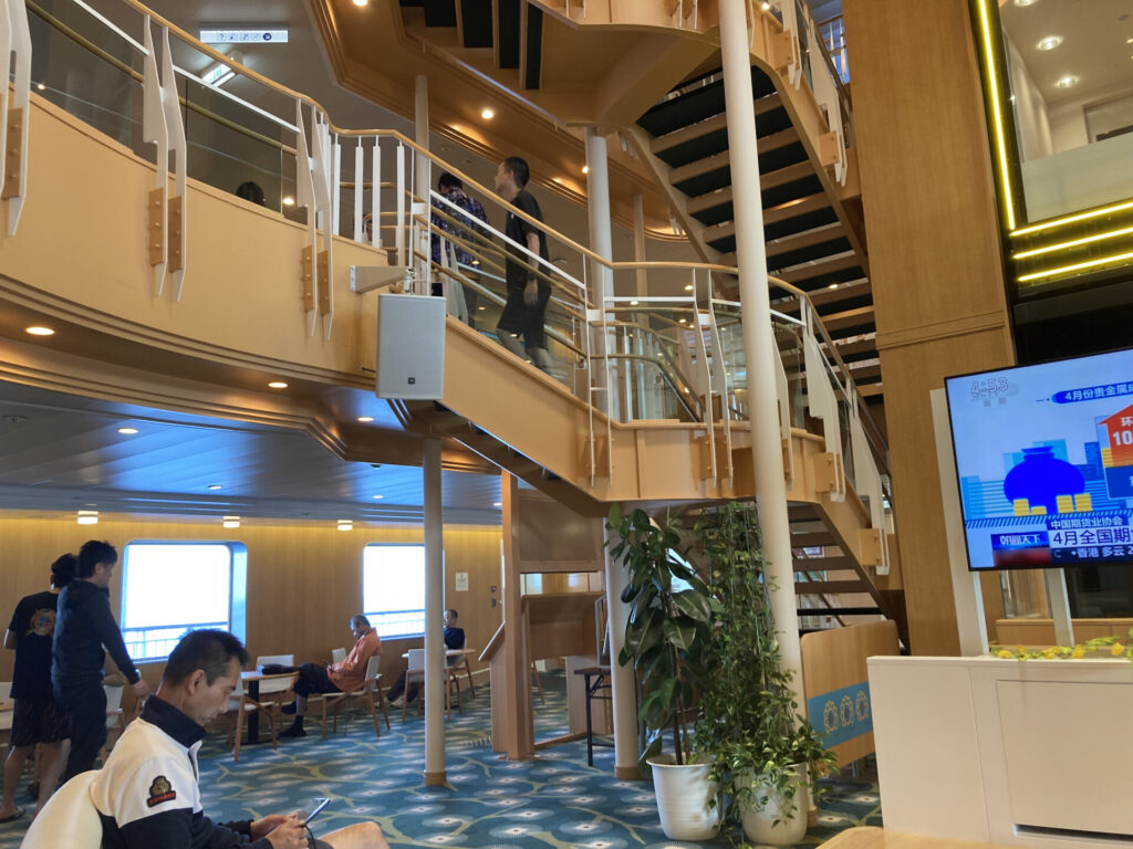 乗船した日はすでに遅いのですぐベッドに入りましたが、翌日の到着が夜の9時ですから、丸一日中船内で過ごすことになります。有り余る時間ですが、自分の書き物をしたり、上映している映画を見たり、船内をうろうろしているうちになんだか時間は経ちました。