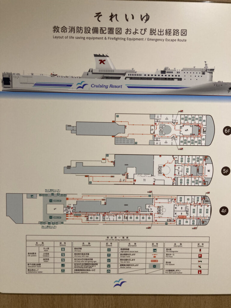 ・運賃:運賃は時期や客室タイプ、車両の有無によって異なります。詳細は公式サイトの 運賃・料金ページ で確認できます。(ちなみに筆者の場合、「乗船1名/車両4m未満/ツーリストA(2等客室相当)」で、片道税込¥37,000。)