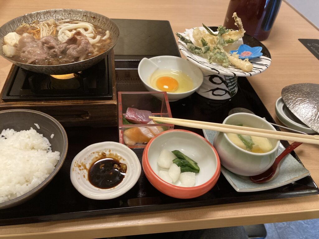 この日のランチは、やまぐち牛(燦)のすき焼き定食。